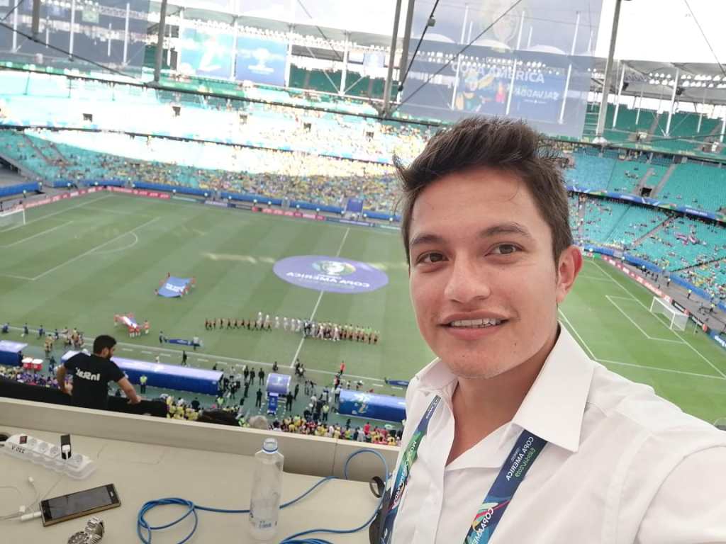 Alejandro Aguilar cubriendo la Copa América de Brasil 2019.
