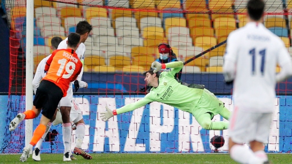 Solomon convierte el segundo tanto ante la estéril volada de Courtois. Real Madrid se juega la temporada la semana próxima ante Borussia Monchengladbach. Foto Marca.com