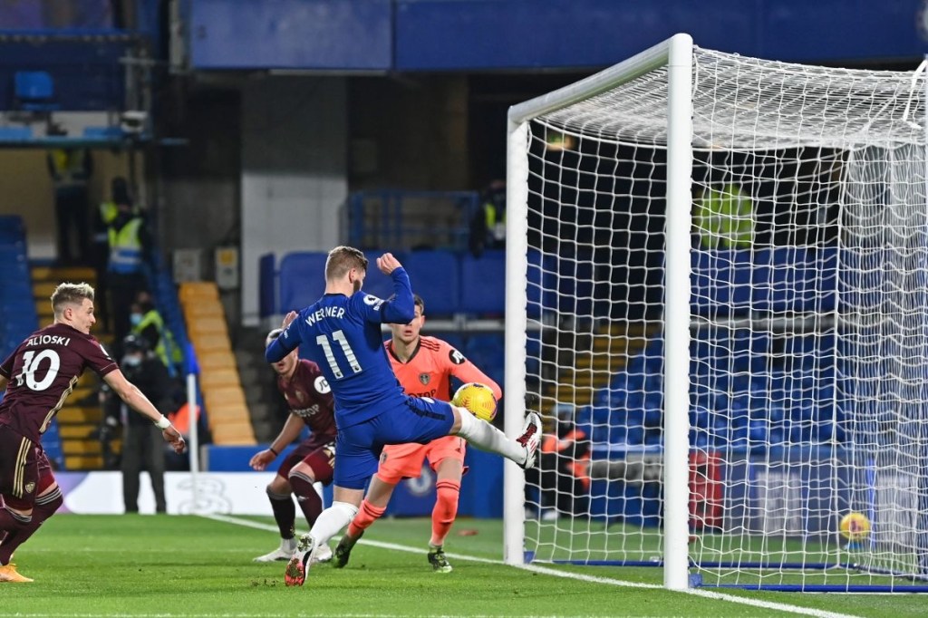 Timo Werner desperdicia una chance increíble. Chelsea venció 3 a 1 a Leeds y se coloca en lo más alto de las posiciones. Foto SI.com