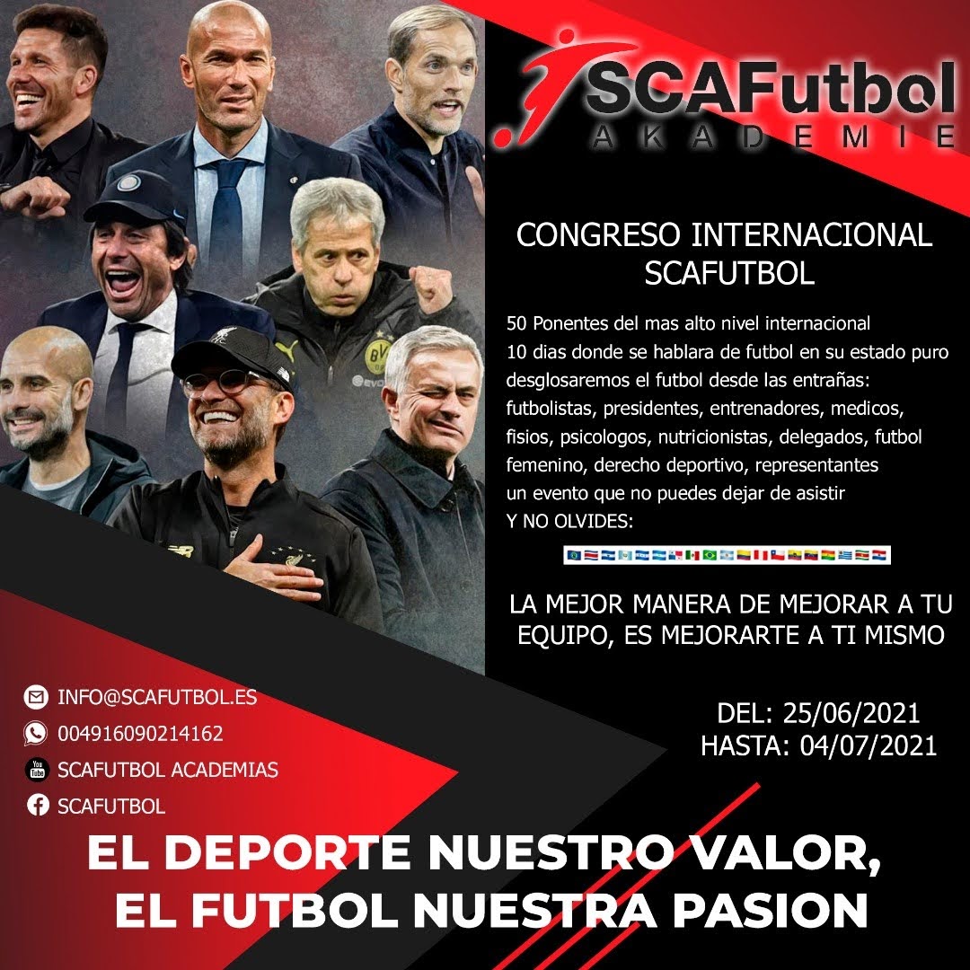 Suscríbanse al canal de YouTube de Scafutbol para participar del Congreso Internacional. Tú puedes ser protagonista del evento del año. 50 ponentes hablando de fútbol del más alto nivel. Te esperamos.