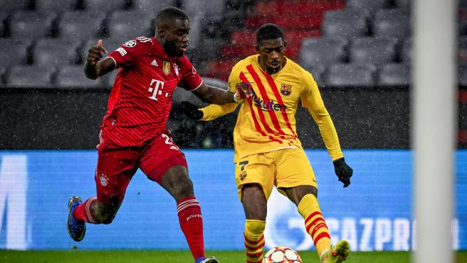 Dembélé no puede ante la marca de Upamecano. Barcelona cayó sin atenuantes 3 a 0. Foto 20minutos.com